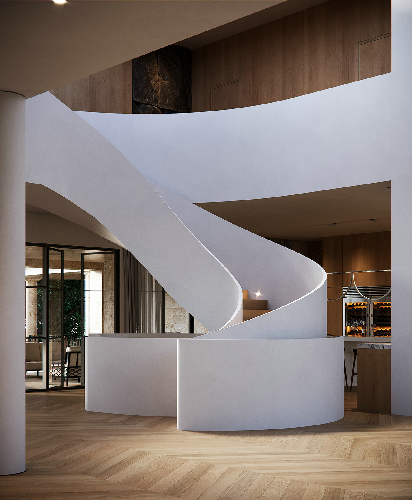 流线型的设计使楼梯整体看起来非常流畅,符合现代家居注重线条美感和空间感的特点。